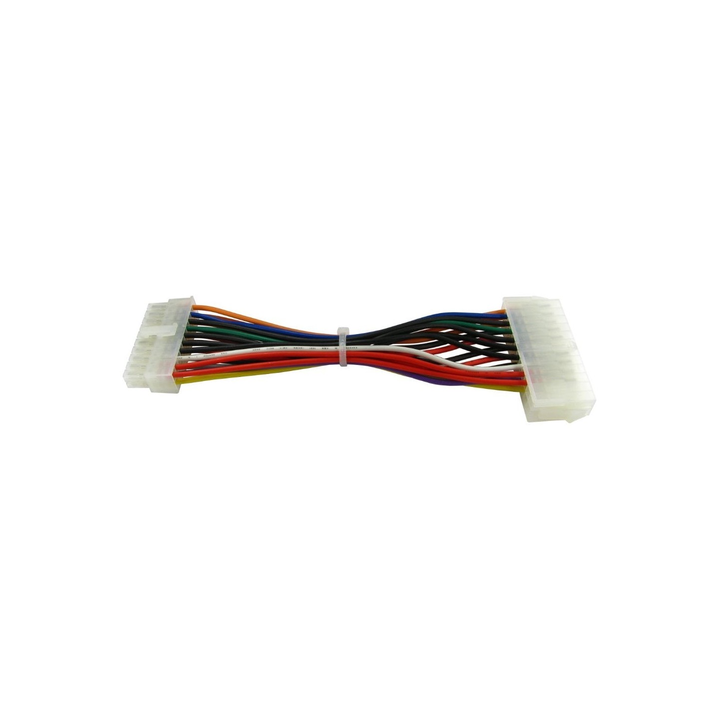Converts 20 pin ATX power supply connector to a 24 pin power supply connector.